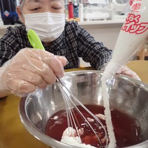 新着情報 2026.03.12 【生活介護】おやつ作り おやつ作りを行いました。 市販の果肉入りデザートの素とホイップクリームを混ぜ合わせ、いつもとはちょっと違うデザートが出来上がりました。 トッピングしてからみんなで『いただきま~す♬』 前へ 一覧へ
