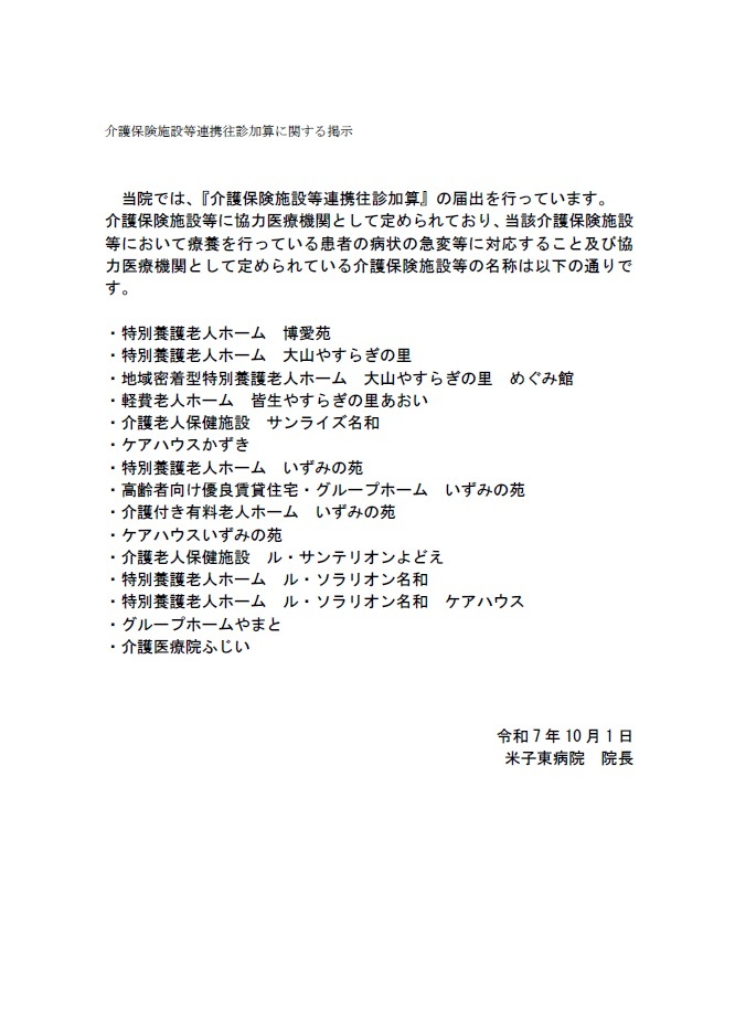 米子東病院は、以下の事項を中国四国厚生局に届け出ている保険医療機関です。