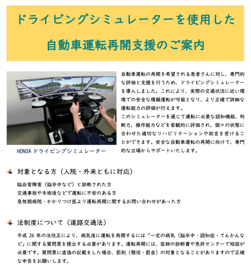 ホーム > 新着情報 > 重要なお知らせ > ドライビングシミュレーター導入のお知らせ 重要なお知らせ ドライビングシミュレーター導入のお知らせ 2025/09/25 投稿ナビゲーション 次の記事 >< 前の記事