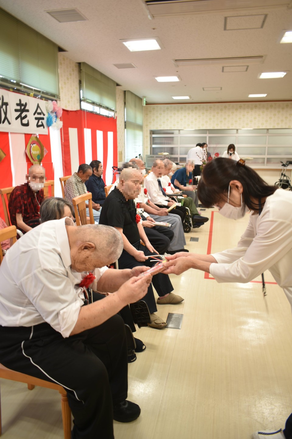 75歳以上のご利用者を敬老者として長寿を皆で祝いました。今年の75歳以上は17名いらっしゃいました。