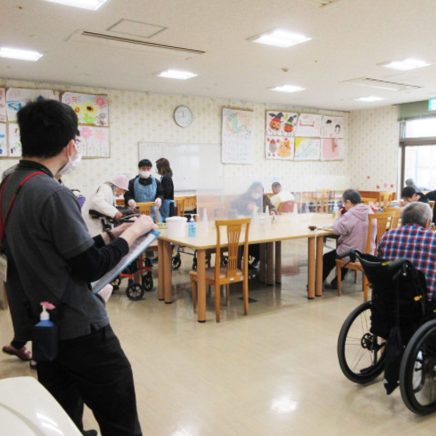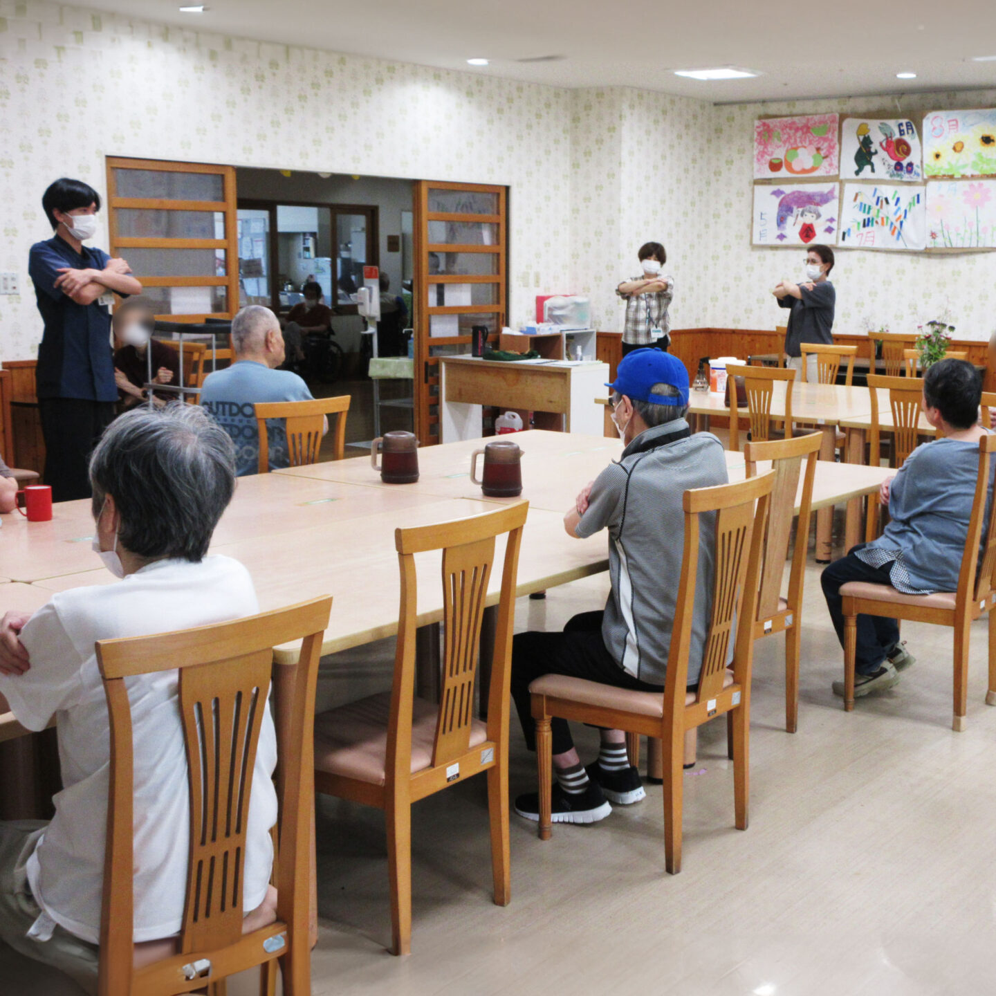 派遣された専門有資格者(作業療法士・言語聴覚士など)は、事前調査を踏まえ『身体機能訓練』・『口腔機能・ケア訓練』を実施し、職員は有資格者の指導のもと、利用者のADL(日常生活動作)維持・向上に努めております。