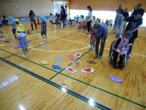 体操のあと、園児さんのダンス・大玉ころがし・魚釣りゲームなどを行いました。
