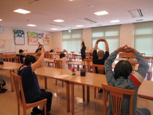 作業療法士による腰痛予防体操、口腔嚥下機能、下肢筋力を鍛える体操をおこないました。