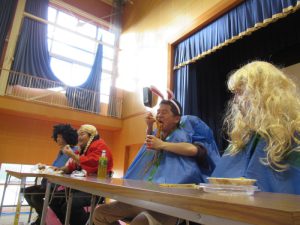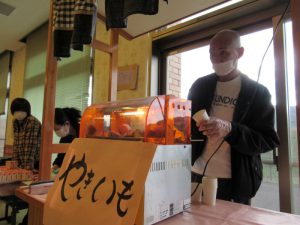 出し物「二人羽織」、プレゼント抽選会と続き、最後は焼きたての焼き芋でティータイムを堪能しました。