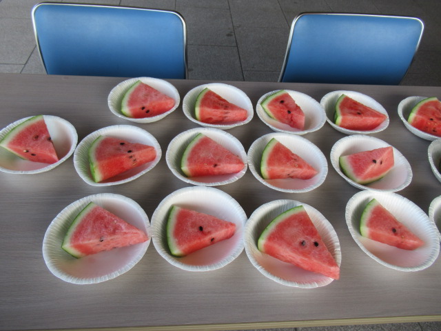 休憩中には、ジュースとスイカを提供し、喜んで食べていただきました。
