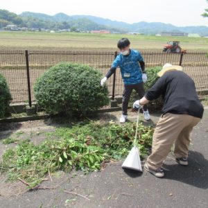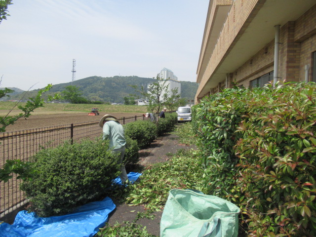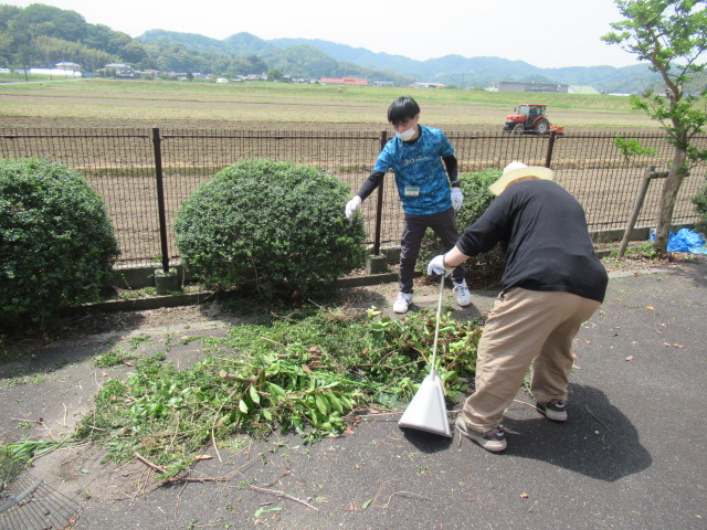 初夏の日差しに汗ばむ中、ご利用者と職員でゆりはま大平園敷地内の環境整備をおこないました。