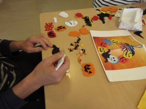 ハロウィン🎃工作 NEWS & TOPICS HOME > 新着情報 > ハロウィン🎃工作 お知らせ 2023.11.8 ゆりはま大平園の新着情報 ハロウィンの工作を希望者で行いました。 フェルトで作ったカボチャやコウモリなどを繋げてリースを作りました。 出来上がったリースは部屋にそれぞれの方が部屋に飾ってハロウィンを楽しまれました🎃 投稿ナビゲーション 次の記事前の記事 トピックス一覧にもどる