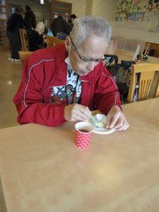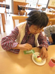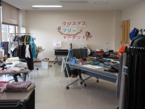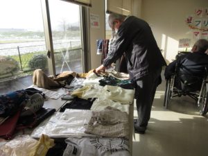 午前中はフリーマーケットを実施。お買い得品を見つけて「いいものがあったわ~」と上手に買い物をされていました。