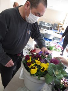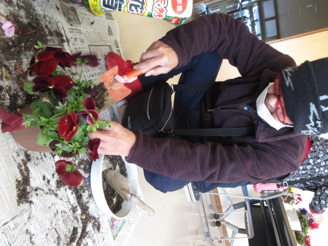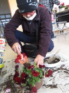 寄せ植えは年末年始の飾りとしても作りました。慣れた手つきで取り組まれる方や初めてで緊張しながら取り組まれる方など様々でした。
