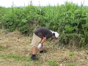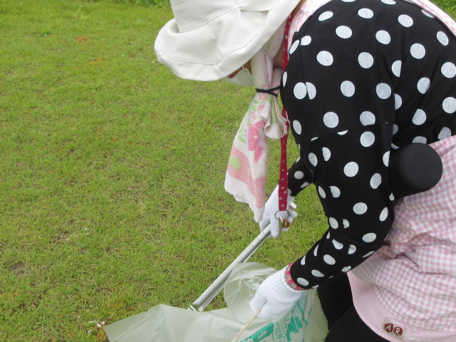 目を凝らして、一所懸命にごみ拾いです。