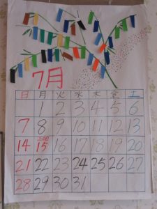 ゆりはま大平園では食堂に飾る大きなカレンダーを活動の一環として毎月、手作りしています。