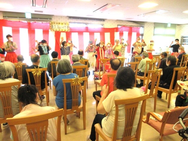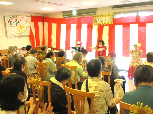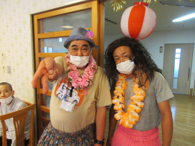暑気払い行事を行いました。~午前編~ NEWS & TOPICS HOME > 新着情報 > 暑気払い行事を行いました。~午前編~ お知らせ 2024.8.13 ゆりはま大平園の新着情報 8月8日に暑気払い行事を行いました。今回は午前の様子をお知らせ。 午前中はボランティアの方による、演芸を観覧しました。 昔話、歌謡曲の披露、歌に合わせた健康体操、フラダンス・・・ 芸達者なボランティアの方の演芸に最初は圧倒され気味のご利用者でしたが、最後のフラダンスは一緒になってダンス🎵 職員も仮装し、参加。 笑顔のひと時を提供して下さったボランティアの方には感謝です。 投稿ナビゲーション 次の記事前の記事 トピックス一覧にもどる
