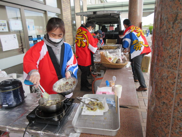 敬仁会館からは焼きそば、椎茸のてんぷらの屋台。