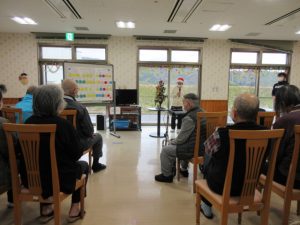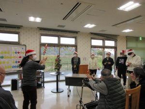 クリスマスプチコンサートとして、ご利用者有志と職員によるハンドベル演奏、歌の披露。