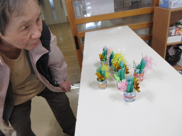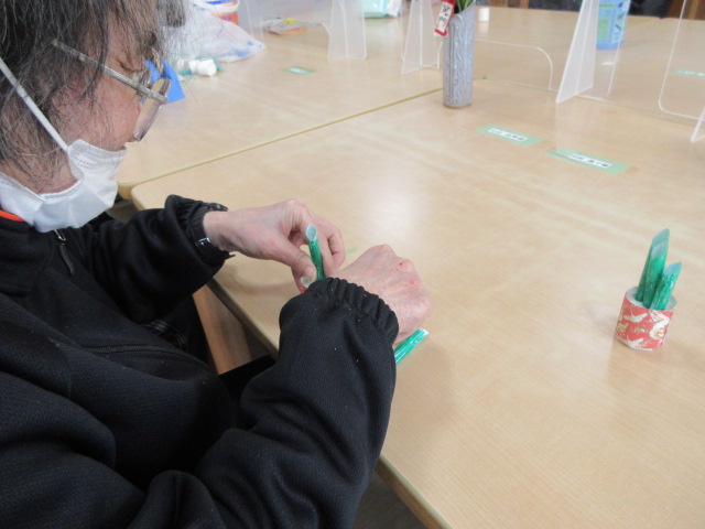 ミニ門松を作りました🎍 NEWS & TOPICS HOME > 新着情報 > ミニ門松を作りました🎍 お知らせ 2025.1.6 ゆりはま大平園の新着情報 月1回で行っている、いきいきクラブでミニ門松を作りました。 ストローや千代紙等の材料を用意しました。 その小ささに最初は少し苦労も・・・。 職員のアドバイスで「ああ、そうやればいいのか」などの声も聞かれ、だんだんと楽しまれるご様子が見られました。 ご利用者それぞれのセンスが光るミニ門松が出来ました! 正月らしい雰囲気に満足の声が聞かれました。 投稿ナビゲーション 次の記事前の記事 トピックス一覧にもどる