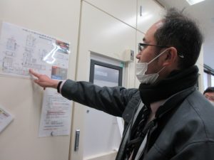 説明後は、避難訓練です。日中想定のため、普段の状況で避難開始です。