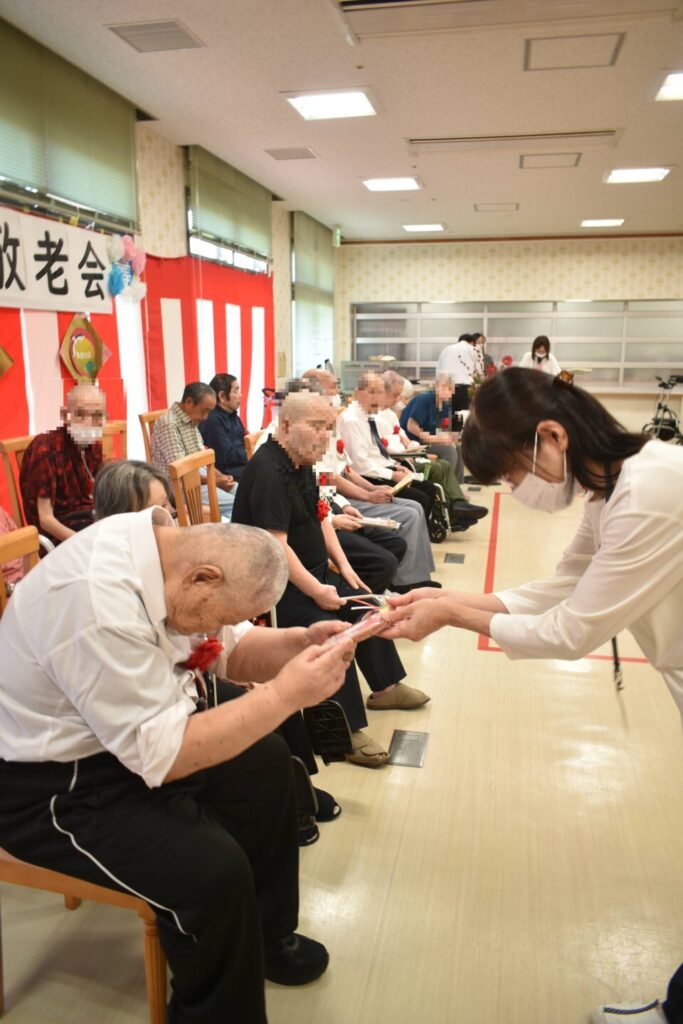 最初は施設長より敬老者に対し、記念品の贈呈を行いました。