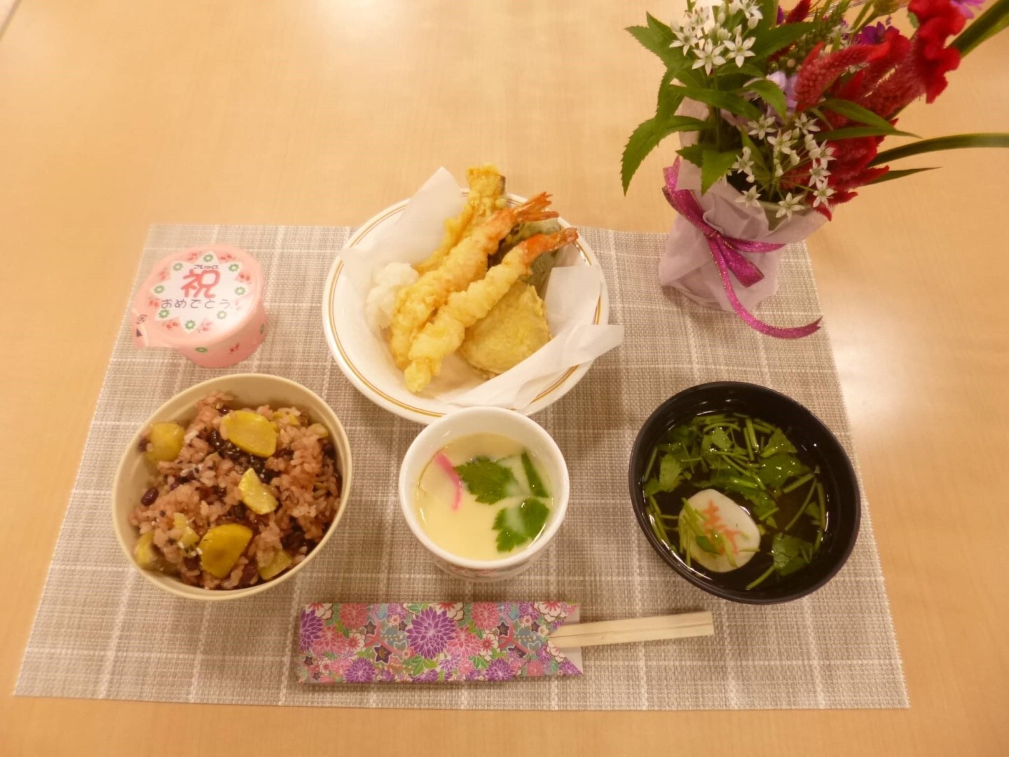 今回は敬老会に合わせて昼食もお祝い仕様です。