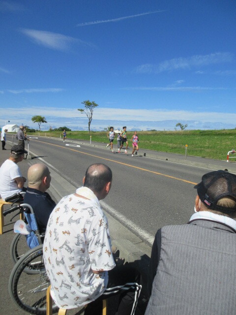 ゆりはま大平園前の県道がコースになっており、沿道で選手の応援をしました。