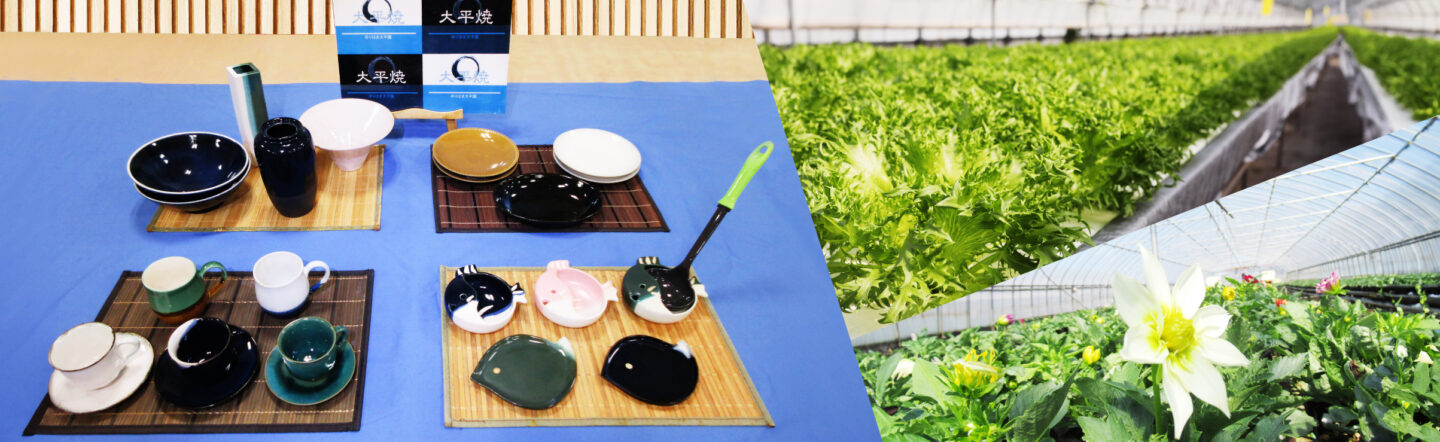 施設内の展示ルームにおいても「大平焼」を販売しております。担当者不在の場合もありますので、来訪時には事前に以下へご連絡願います。
